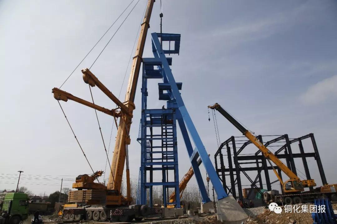317下午,新橋礦業(yè)公司露天轉(zhuǎn)地下項(xiàng)目現(xiàn)場(chǎng),在3臺(tái)巨型吊車的吊裝牽引下,70多噸重的副井斜架與38高的立架順利連接,新的副井井架巍然屹立于新橋圣沖河畔,標(biāo)志著該公司重點(diǎn)礦建工程之一的露天轉(zhuǎn)地下項(xiàng)目地表礦建工程基本完工,經(jīng)過(guò)一段時(shí)間設(shè)備安裝和調(diào)試后便可投入生產(chǎn)。