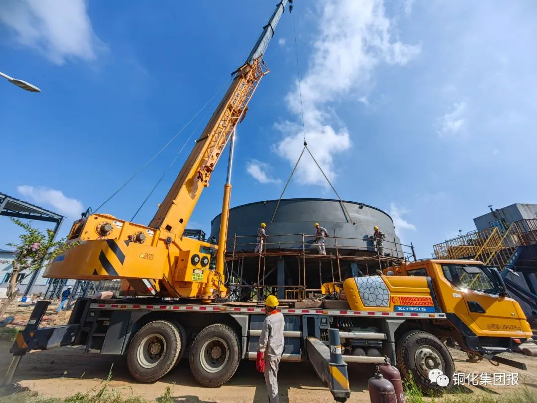 項目完工投用后,每年可處理選礦廢水247.5萬立方米、酸性廢水1000萬立方米,去除COD1485噸、硫化物146.03噸、重金屬錳208噸,在保障原生產線正常運行的同時,顯著降低相關污染物排放,實現外排水水質穩(wěn)定達標,有效保護當地水環(huán)境,環(huán)境效益和社會效益顯著。上圖為吊裝作業(yè)現場。